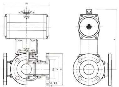 Q44F/Q45F氣動(dòng)三通球閥主要外形尺寸